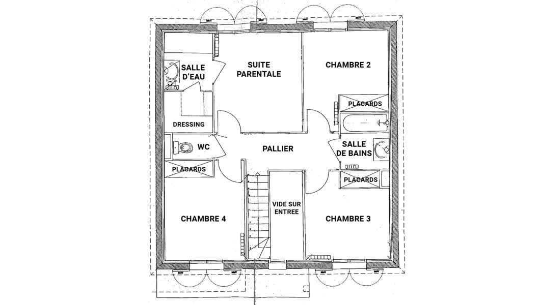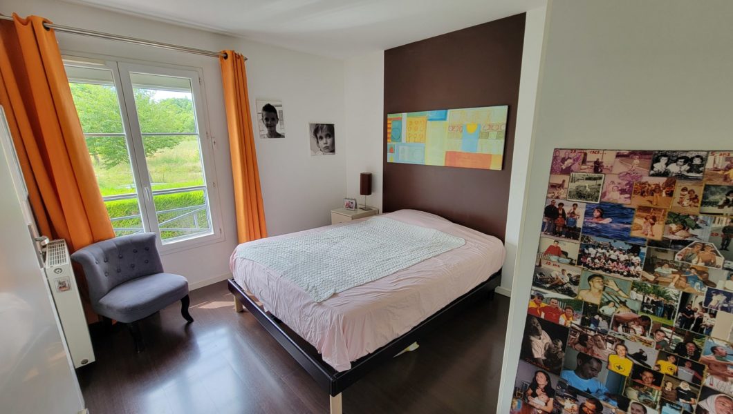au 1er étage: Une Suite parentale avec salle d’eau neuve et dressing, 3 belles chambres avec placards et une salle de bains avec vasque et sèche-serviette ainsi que des WC séparés,