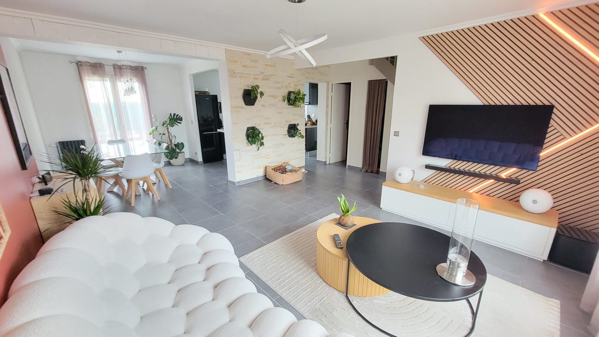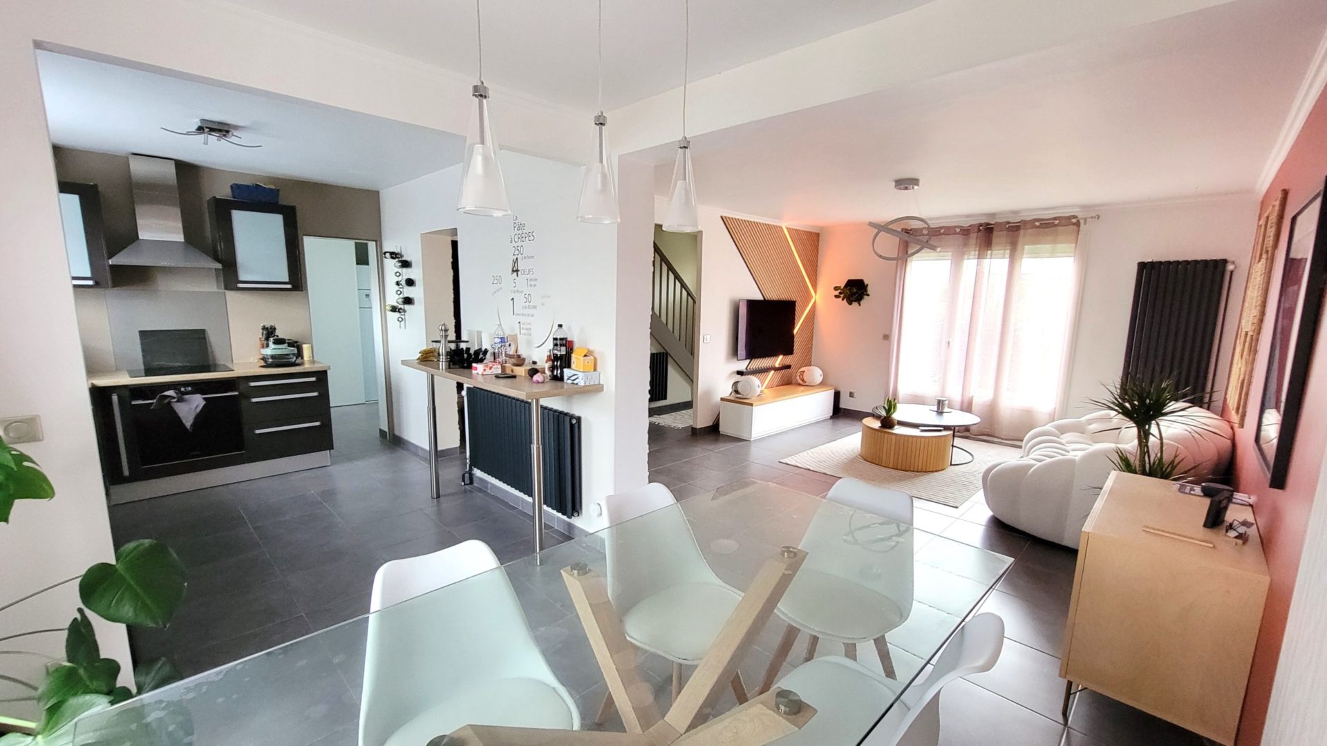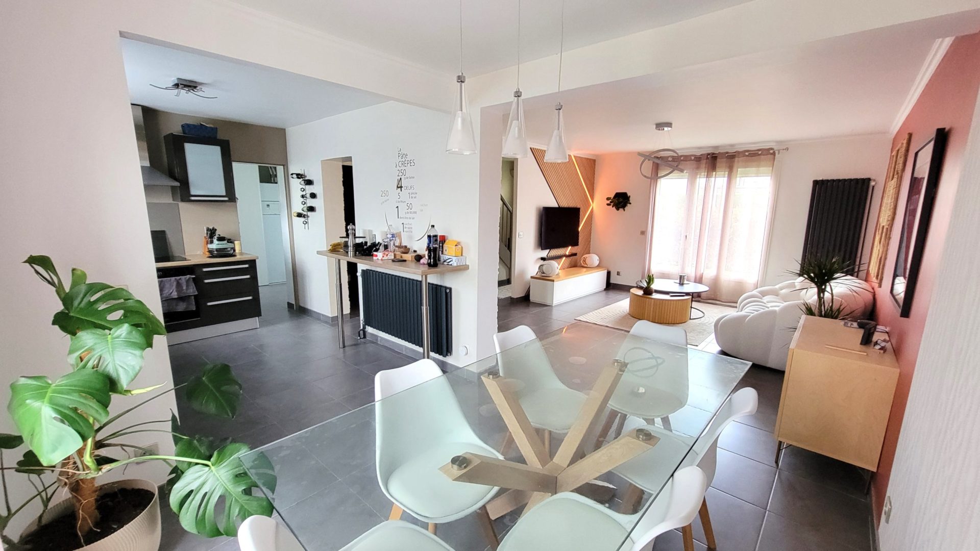 Venez découvrir cette solide et belle maison lumineuse des années 80 entièrement rénovée de 110m² habitables pour 133 m² utiles en excellent état, aucun travaux à prévoir composée de: