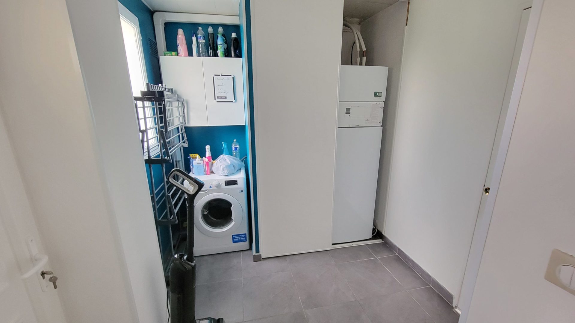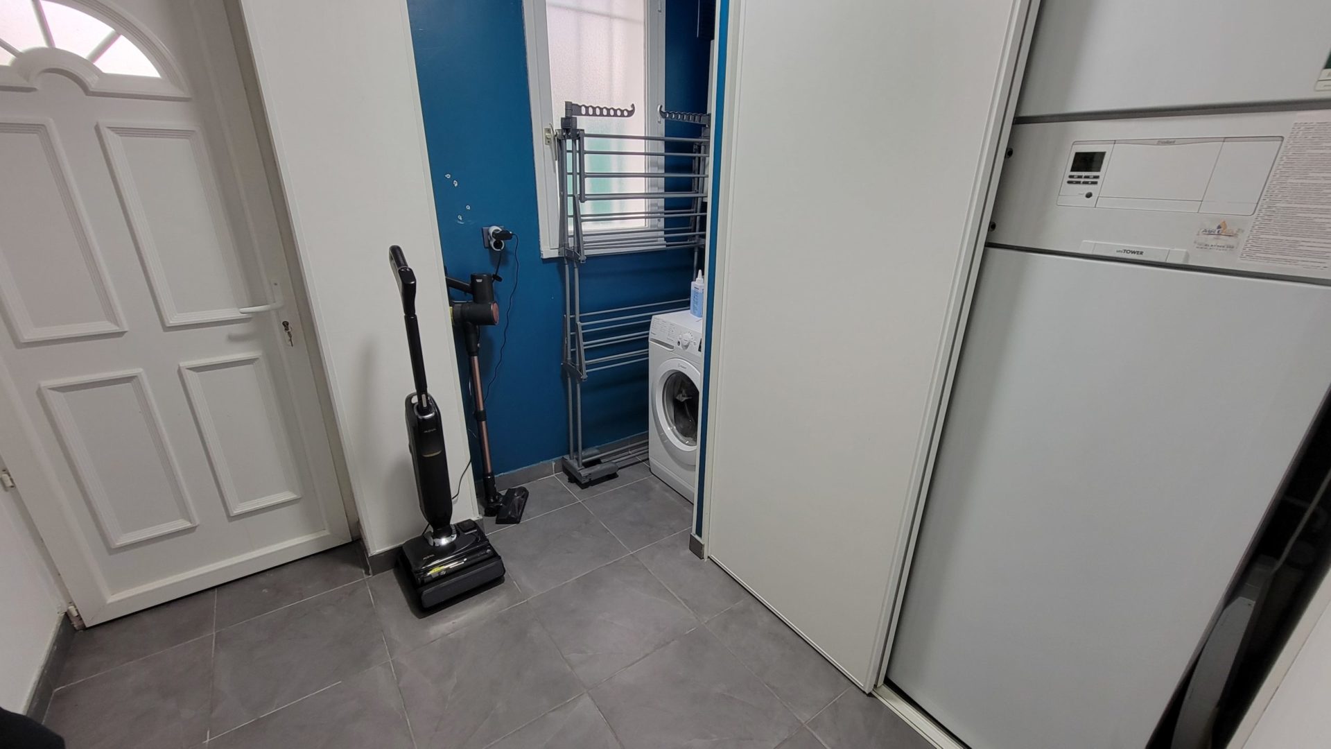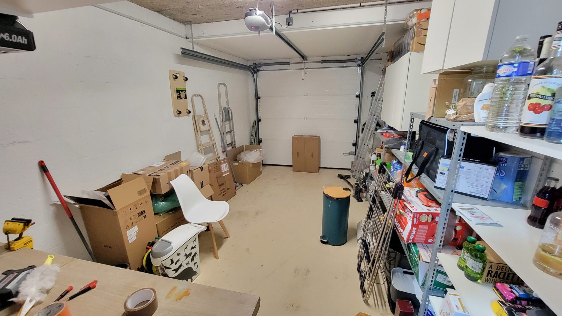 Garage avec nombreux rangements et place de parking devant, places de stationnement possibles dans la rue devant la maison.