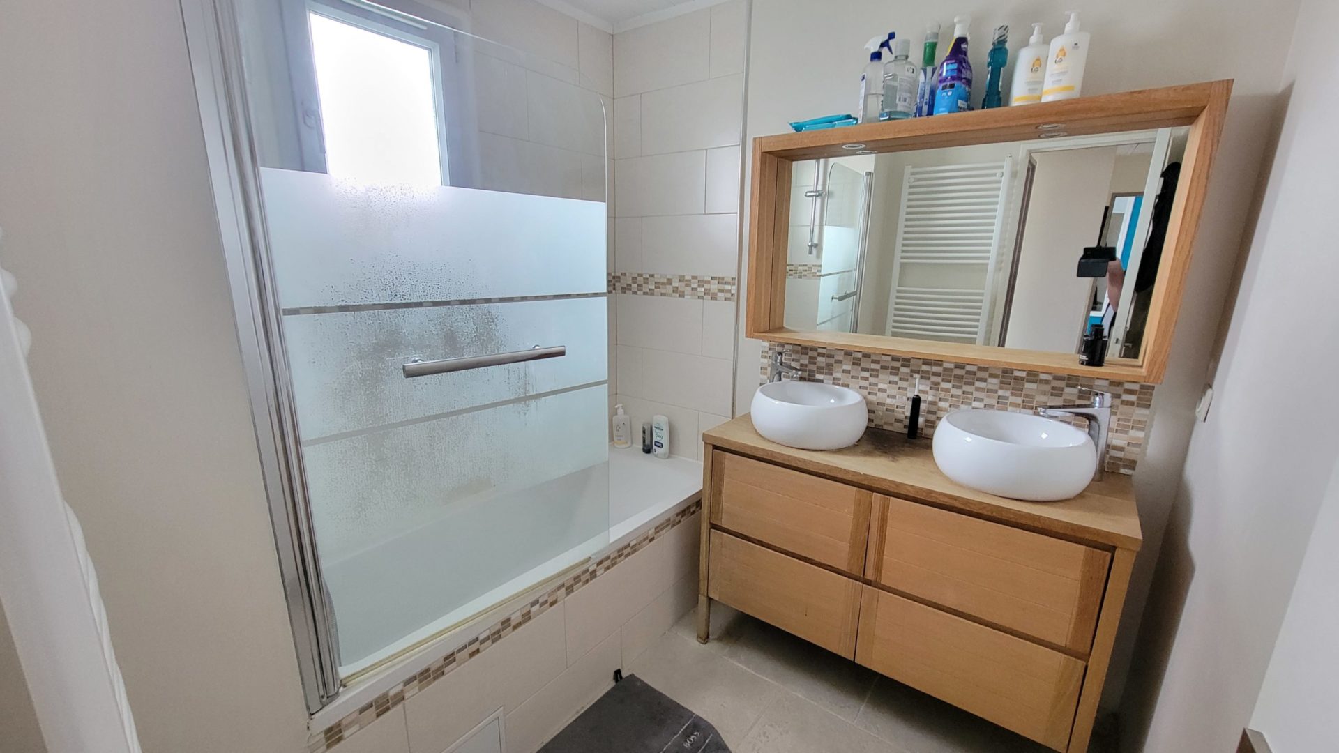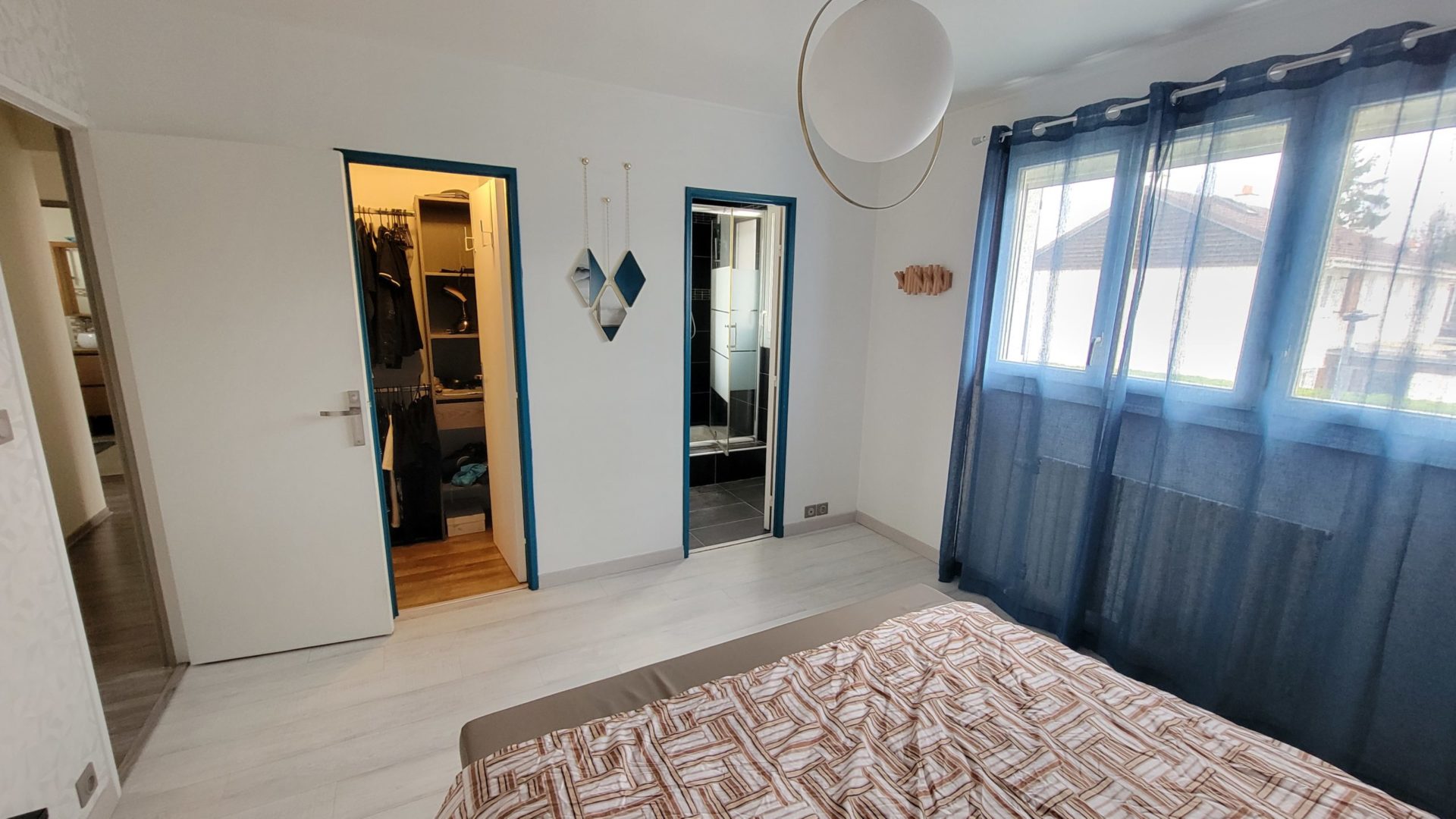 au 1er étage: Une Suite parentale avec salle d’eau et dressing, 3 belles chambres avec placards et une salle de bains avec double-vasque et sèche-serviette ainsi que des WC séparés,
