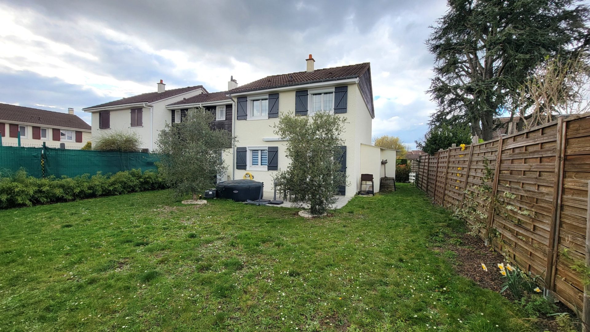 Jardin arrière et latéral au calme avec abri de rangement, terrasse avec espace spa. Exposition Sud Est -Nord Ouest.